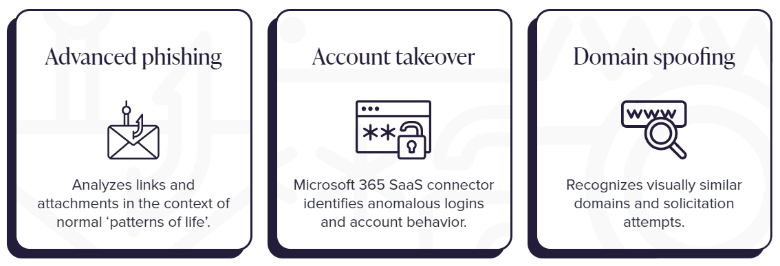 Learns the unique ‘pattern of life’ for every email user to identify anomalies