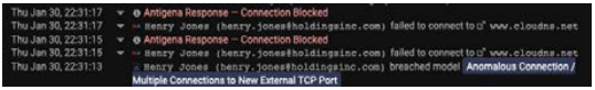 Darktrace Antigena actioning a targeted autonomous response