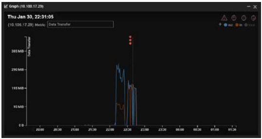 The Threat Visualizer showing a large spike in data transfers