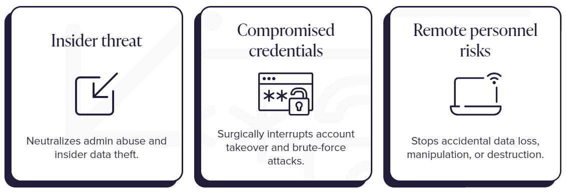 Administrators typically have elevated privileges and understand SaaS platforms better than anyone, which means most native and third-party security tools will fail to see subtle malicious behavior. Because these tools have limited visibility, armed only with basic analytics and static policies, they are unable to spot the nuanced behavioral shifts that indicate a malicious administrator. Traditional SaaS security solutions are also siloed from the rest of the network, and therefore cannot connect workforce behaviors across an organization to illuminate the greater narrative of malicious activity when an insider becomes a threat.
