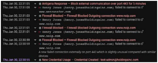 Subsequent investigation revealed that the malicious admin continually sought to exfiltrate the stolen SaaS files through several other methods, including with an internal server he had used regularly at the company. While the administrator’s use of this server may have seemed normal in a different context, Cyber AI was able to connect the dots between the disgruntled employee’s actions in the SaaS ecosystem and the corporate network, illuminating the full extent of this user’s malicious behavior.