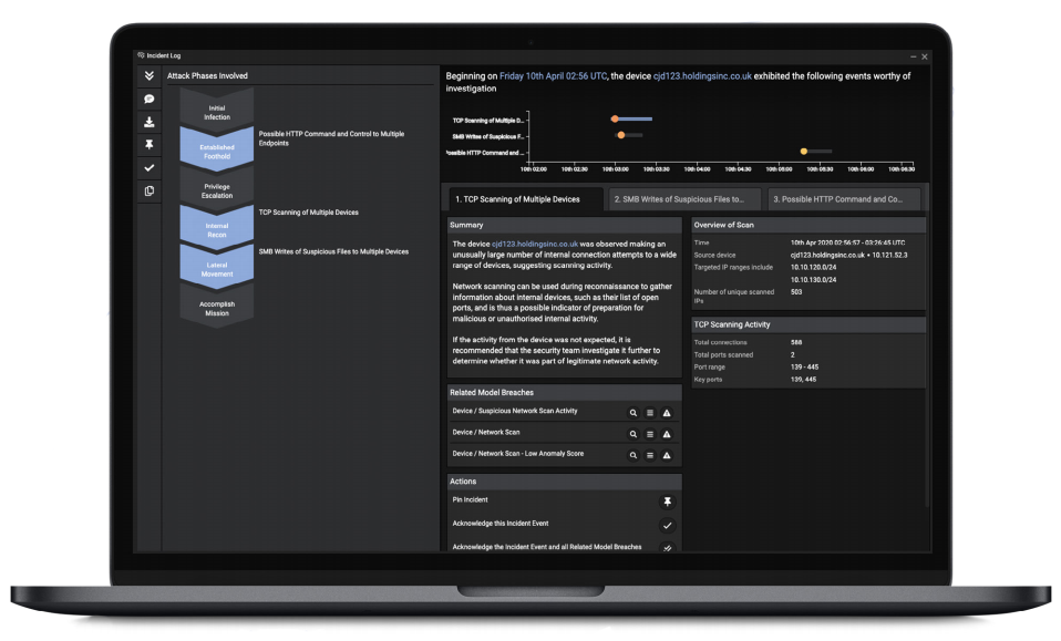 In understanding that the activity may have indicated an attacker working their way through vulnerable network devices to gain access to critical infrastructure and resources, the technology was able to alert the security team to the emerging threat immediately and provide crucial contextual information, along with response recommendations.