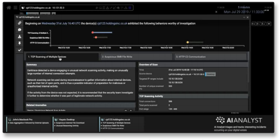 Trained on the behaviors of hundreds of expert cyber analysts, Cyber AI Analyst represents an industry first, conducting autonomous investigations on the full range of threats.