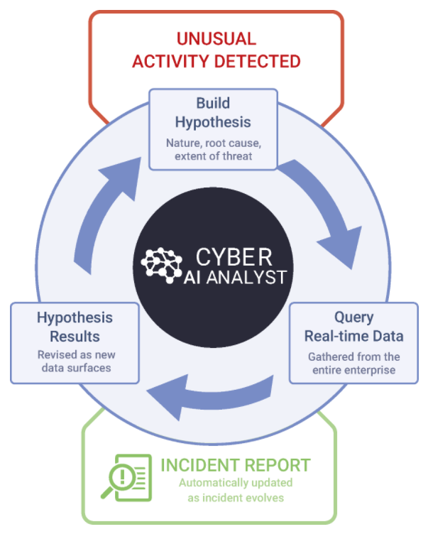 A key feature of the immune system approach and enabled by artificial intelligence, Cyber AI Analyst can sift through large volumes of data at a speed and scale, augmenting human teams and buying back time to focus on strategic work.